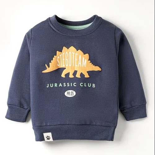Looper Knit Full Sleeves T-Shirt with Dino & Text Print