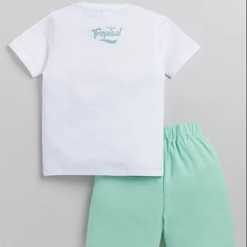 Cotton Half Sleeves Tropical Theme Printed Coordinating Tee & Shorts Set