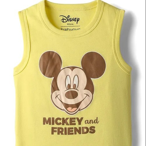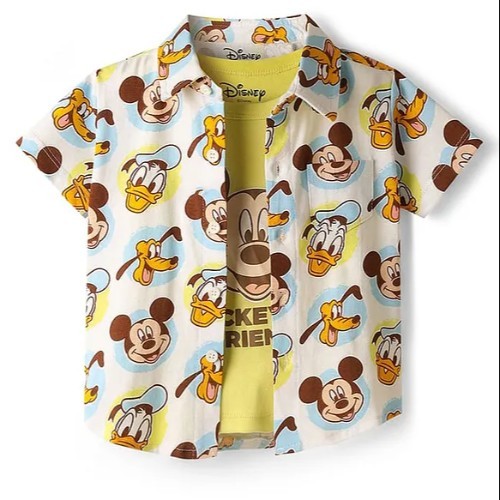 Single Jersey Knit Half Sleeves Shirt with Sleeveless Inner Tee & Denim Shorts Set with Mickey Mouse Graphics