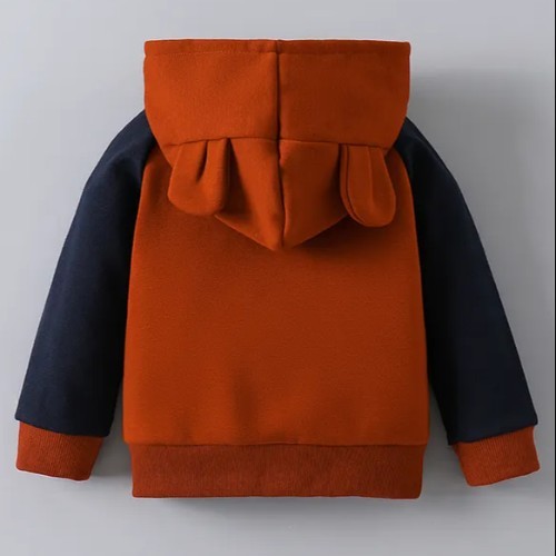 Full Raglan Sleeves Hooded Sweatjacket With Lion Print & Kangaroo Pockets